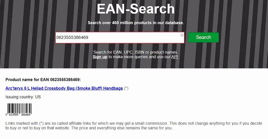 最後のメジャーな偽造品判断ポイント、EANタグはいずれの製品にも付属。EANデータベースサイトでそれぞれのEANコードを検索かけてみたところ、Smoke BluffカラーのみEANタグがヒットしましたが、よくよくみてみると、そもそもデータベースにSynthカラーのヒリアド6が登録されていない。これでは検索に引っかからないのも当然で、確定的な真偽判定には至らずでした。