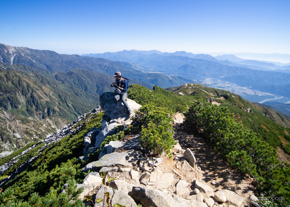 そうしている間にも、牛首の岩場を唐松岳から下っていくハイカー、五龍岳から登ってくるハイカーが何人か通過していきました。ここもいずれ縦走してみたいですね。