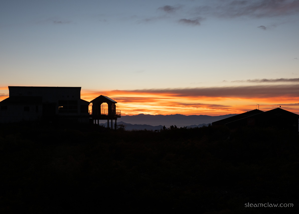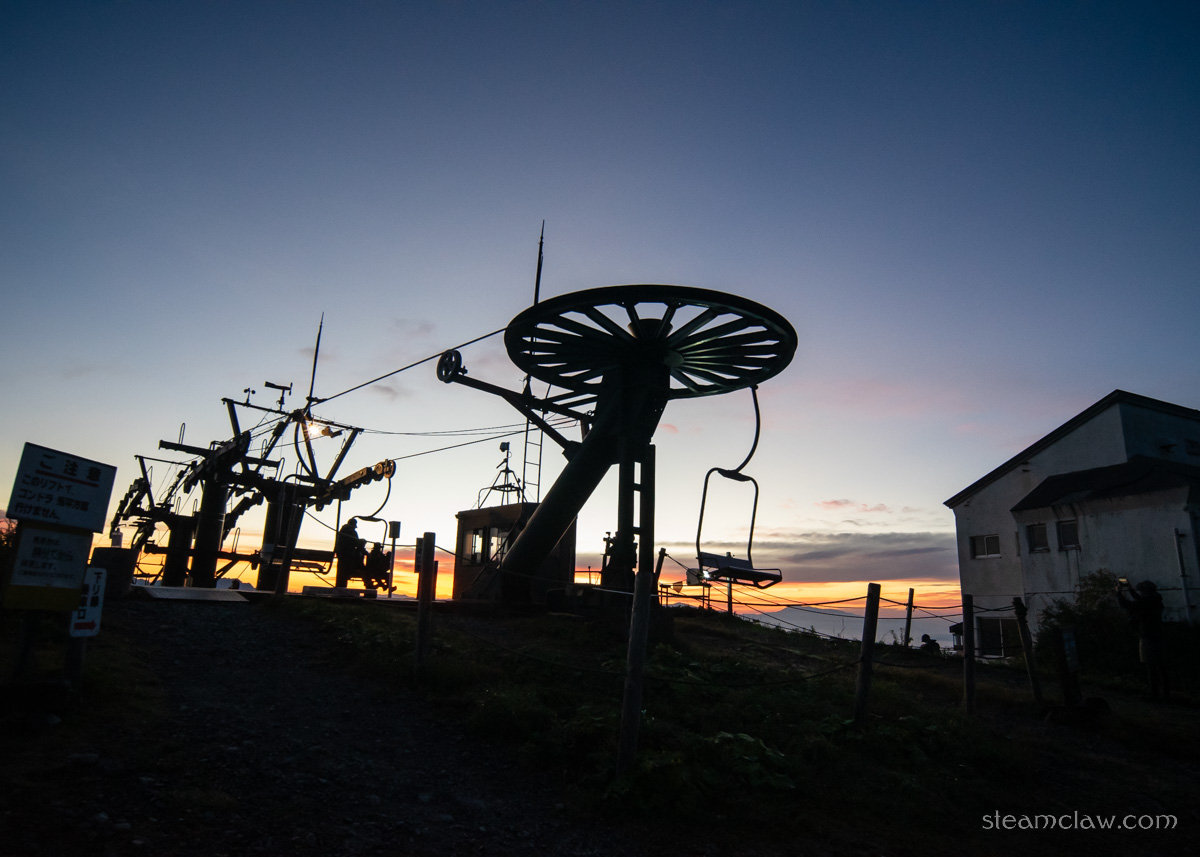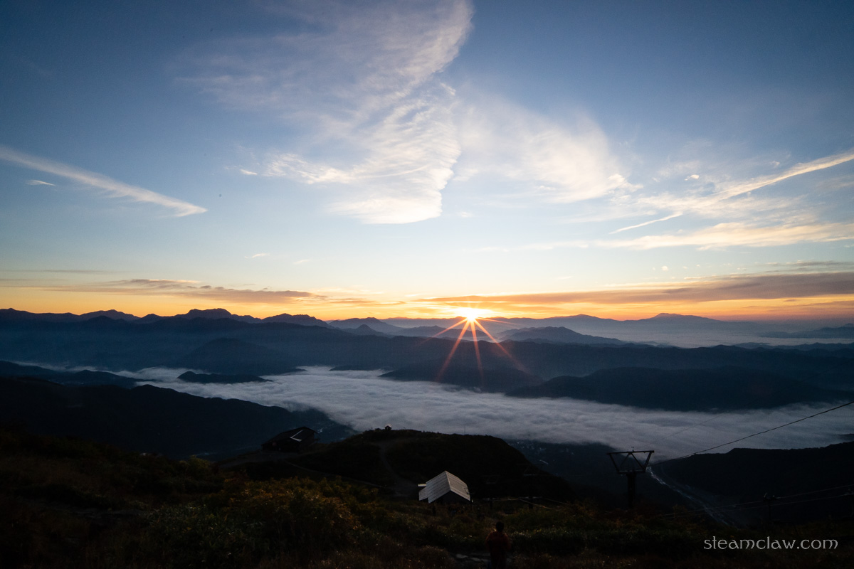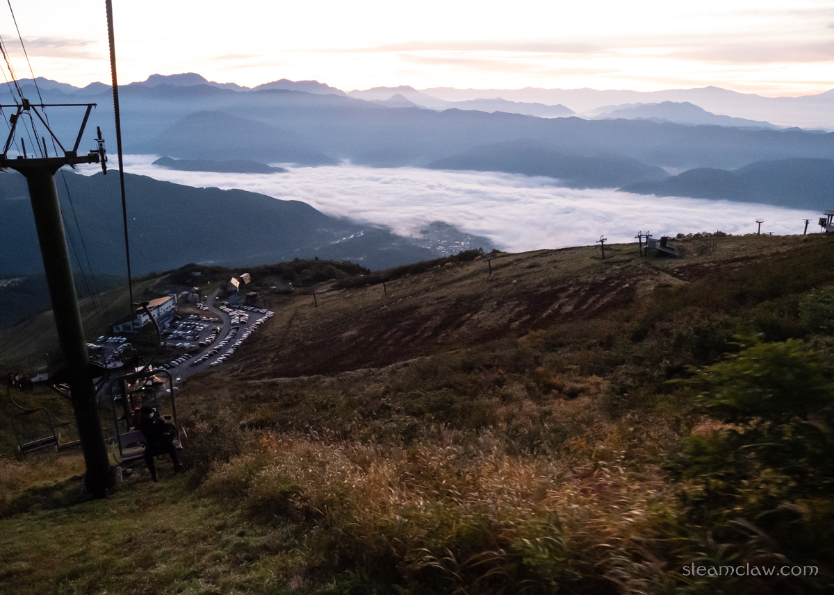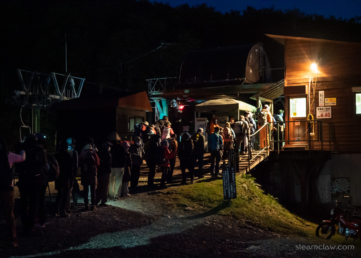 この黒菱ラインですが、2つあるリフトの乗継ぎ地点である黒菱平から御来光を見ることができる時間にあわせて運行開始しているようで、ちょうど東の空が明らみはじめています。