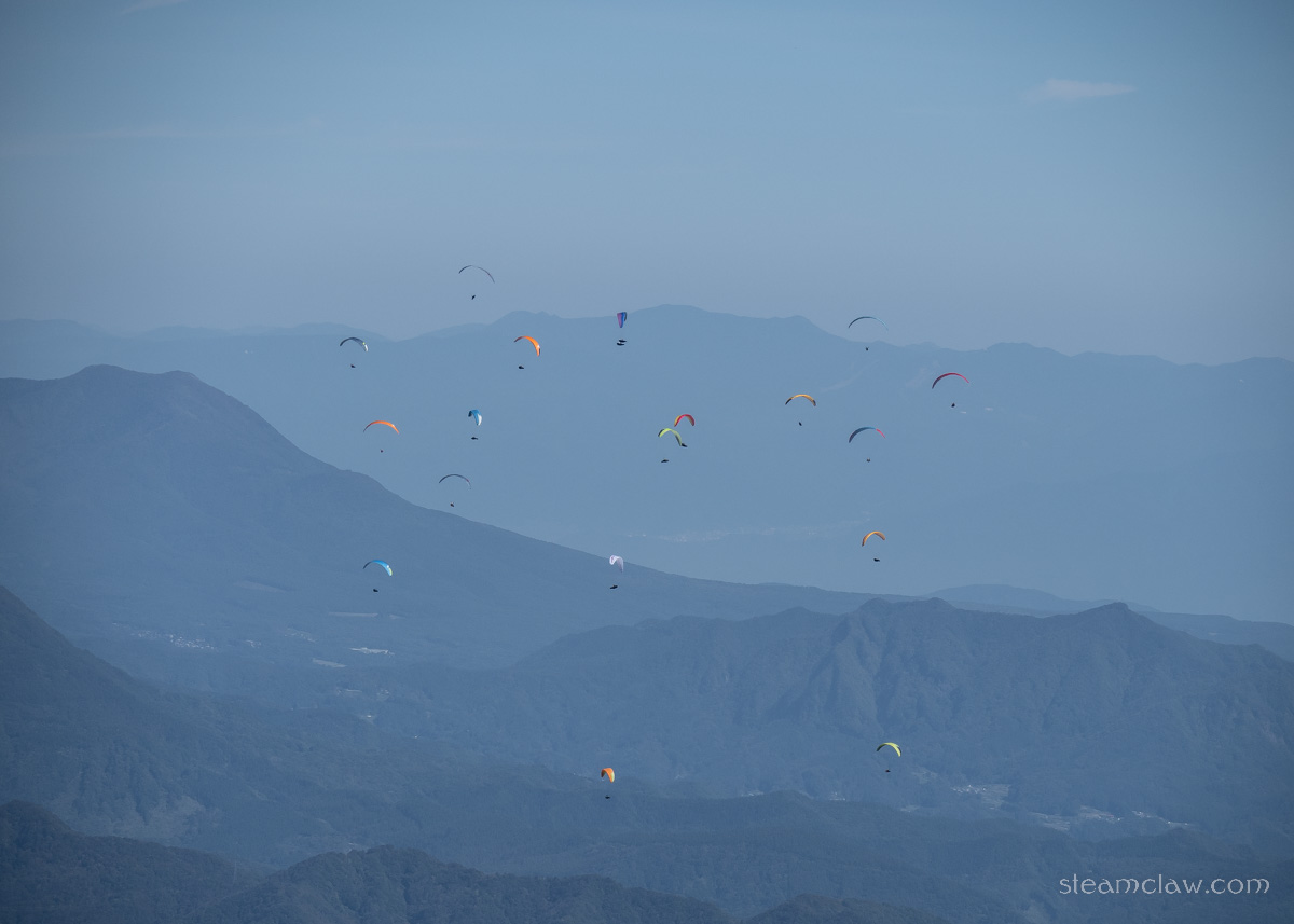 八方尾根はパラグライダーでも有名らしく、十をゆうに超える数のパラグライダーが空を彩っていました。ここはライセンスがなくても、パイロットとタンデムで観光フライトさせてもらえるみたいですね。自分もいつか飛んでみたいと思いつつ、これ以上趣味は増やせないだろうなあ😂