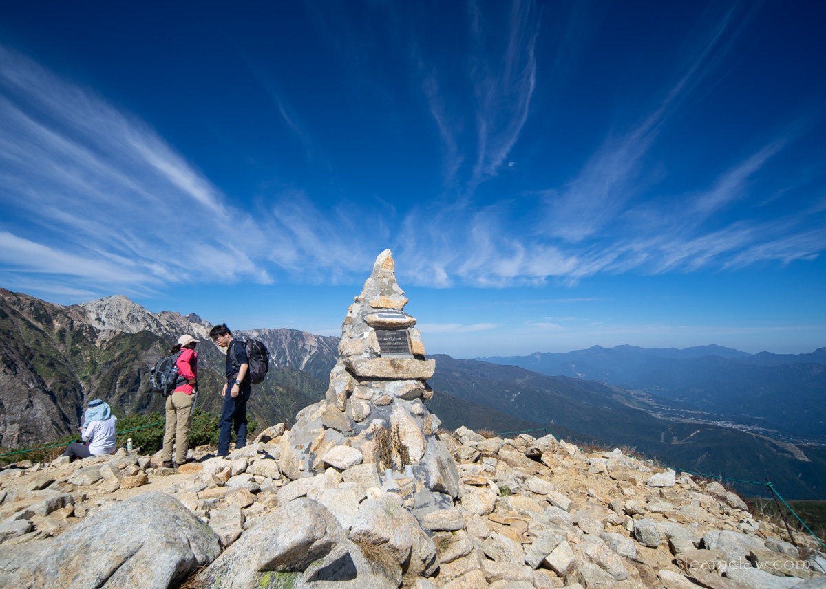 これといって難しい登山道ではないので、下りもサクサク歩いていきます。往路は曇りひとつない青空でしたが、午後からは少しずつ雲が出てきました。広角レンズはこういう空模様のときが一番いい写真が撮れる気がします。
