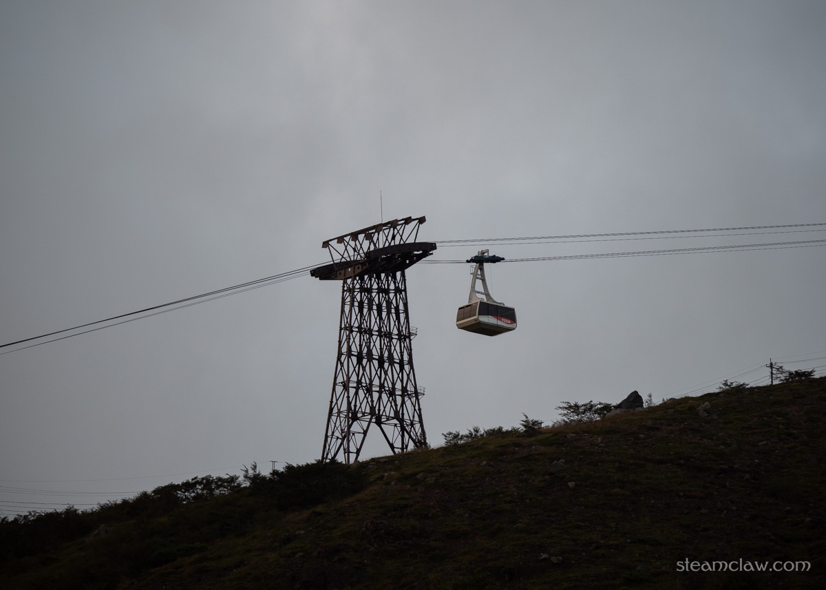 なお写真は撮っていませんが、三角点は祠のある1,915メートル地点ではなく、鳥居のロープウェイ山頂駅側、1,898メートル地点にあります。案内看板が出ているので気をつけていれば見つけられるはずですが、三角点を踏破したい方は見過ごさないようにご注意を。