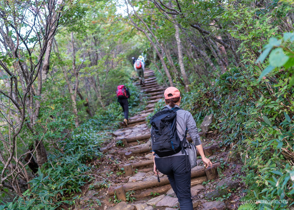 駐車場からここまで来るのに30分ほどでしょうか。あまりのお手軽さに感動しながら、大勢のハイカーと一緒に緩やかな登山道を歩いていきます。