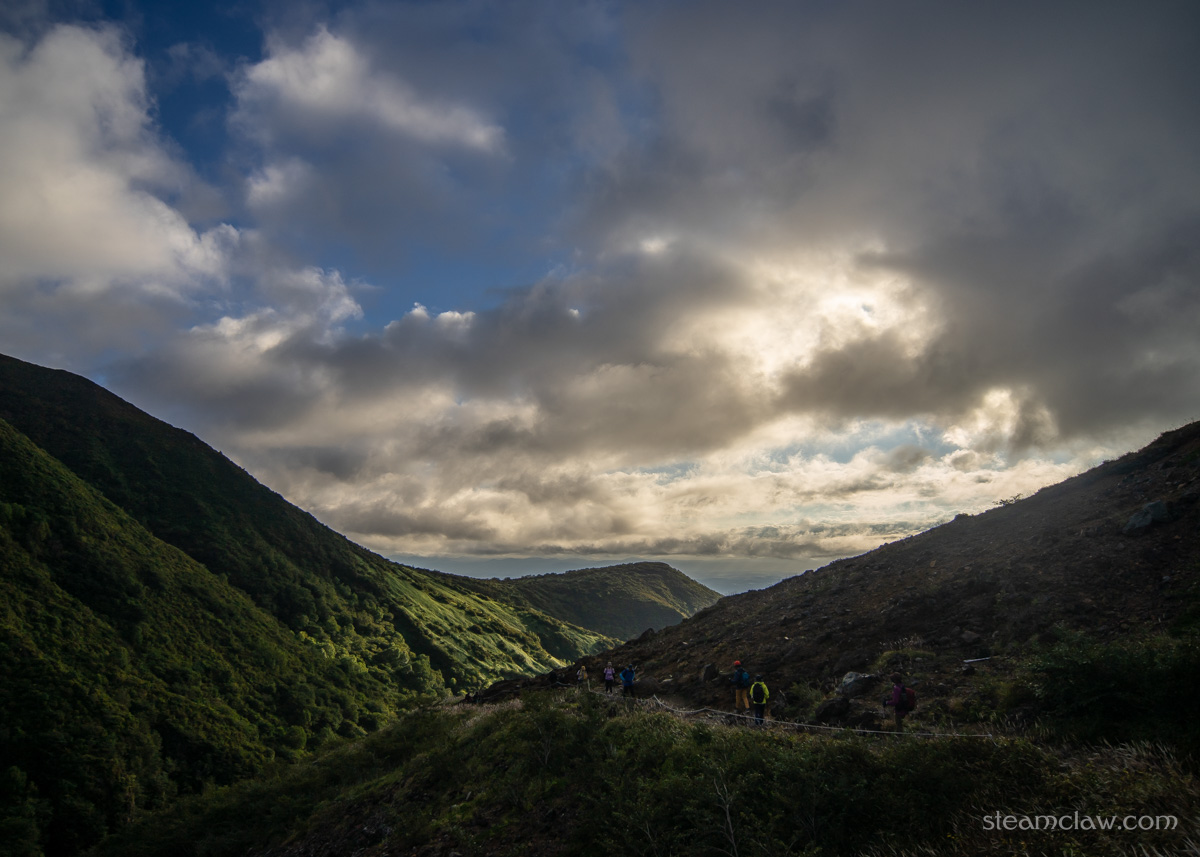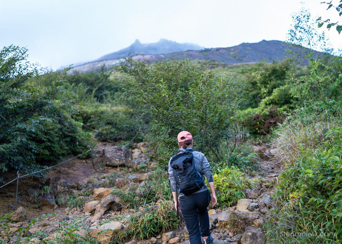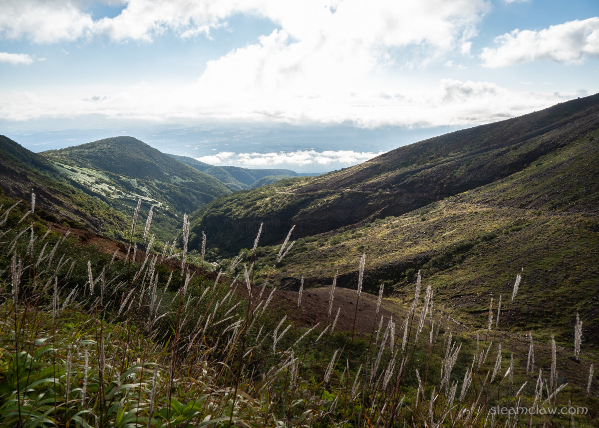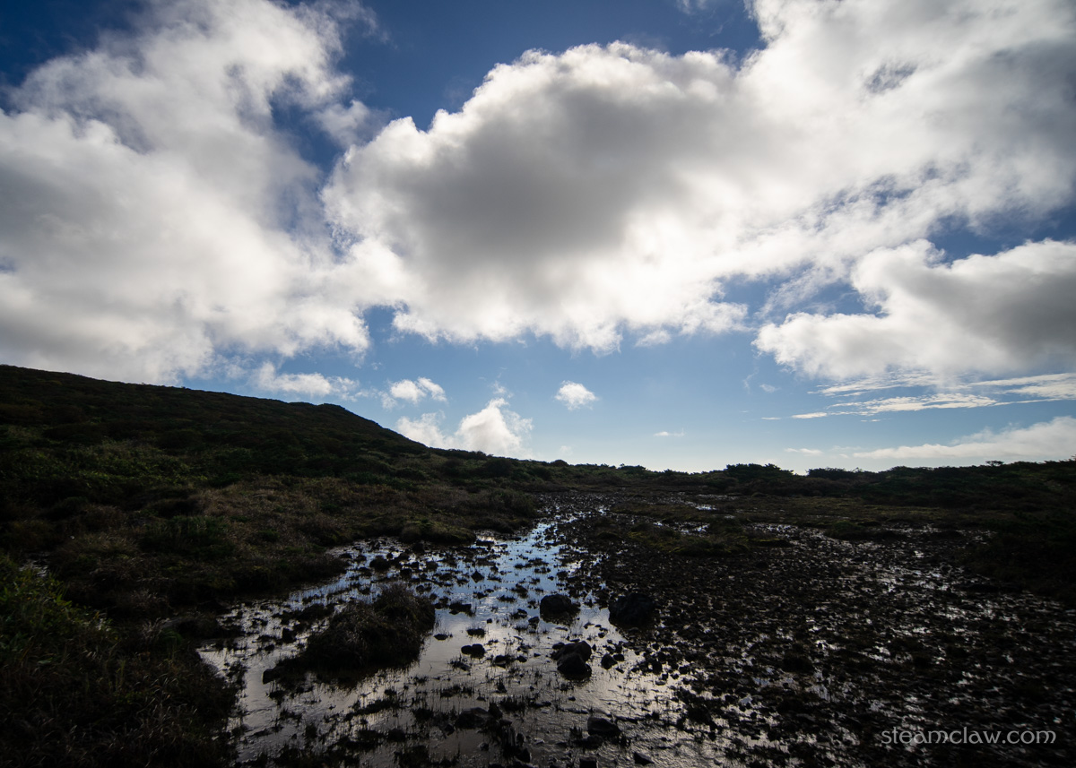この日は茶臼岳にて最低気温9℃、最高気温15℃、風速4-5メートル/秒という予報。初の北関東エリアなので念のためと思いシェルジャケットを持ってきたのですが、あっという間に不要になってしまい、ほぼベースレイヤーのみで行動可能でした。