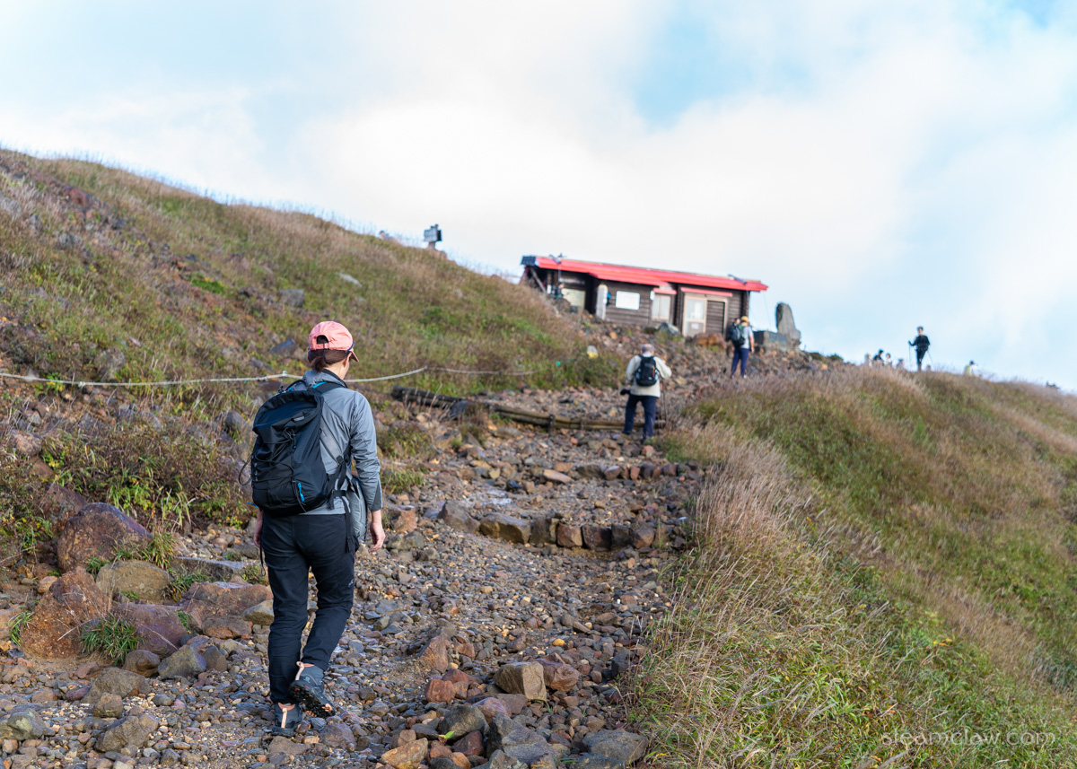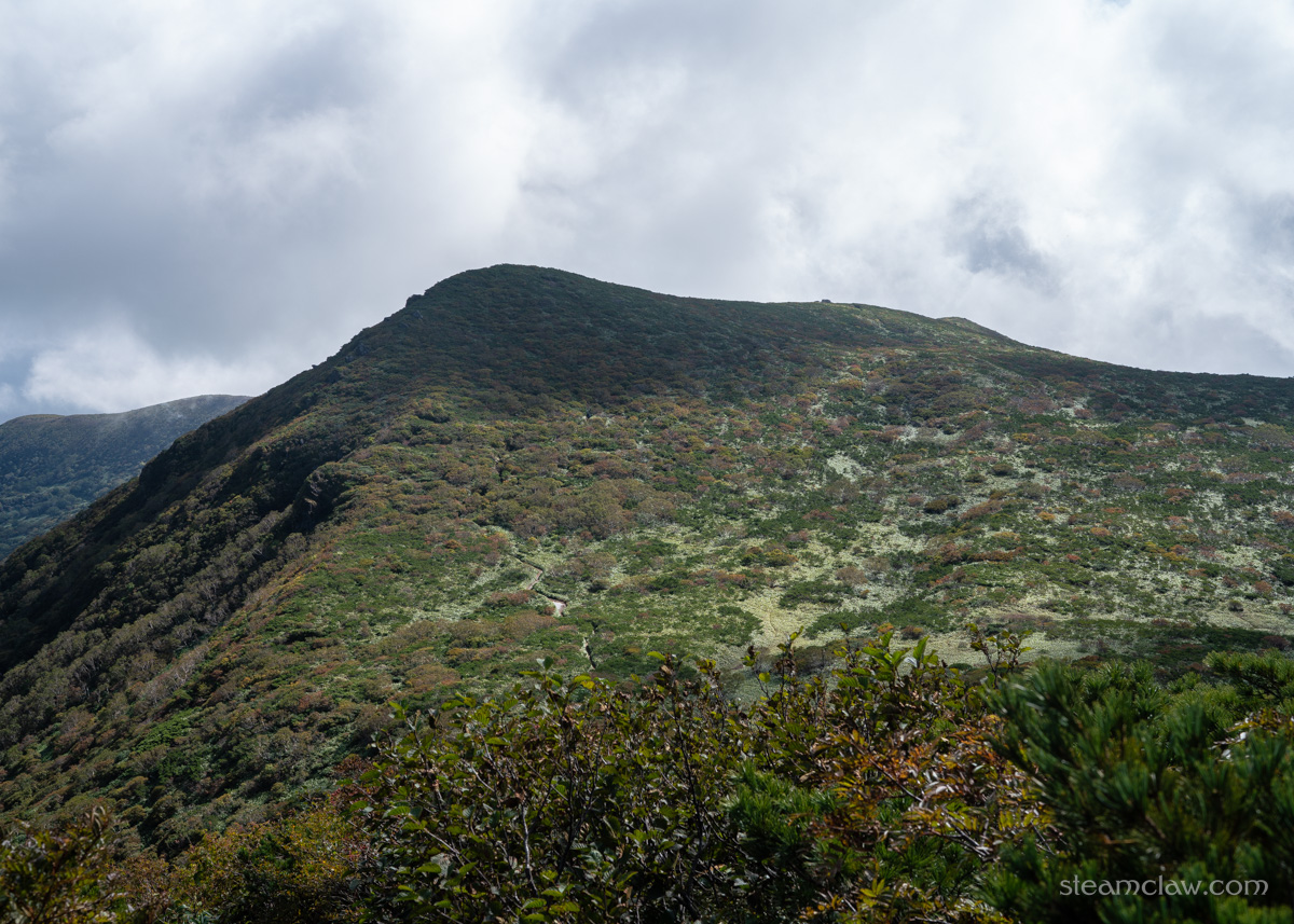 那須連峰のなかでは最高峰となる標高1,917メートルを誇る三本槍岳ですが、清水平から登っていくと周辺との標高差があまりなく、その山容はまるで低山かのような印象を受けますね。活火山らしい茶臼岳や、険しい朝日岳のほうが印象的です。