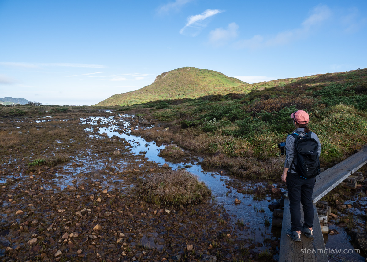 植生保護のための木道が整備されているので、その上をテクテク歩いていきます。