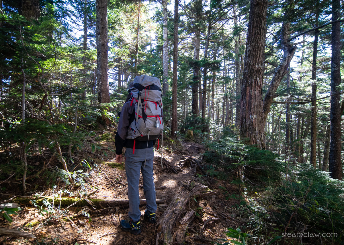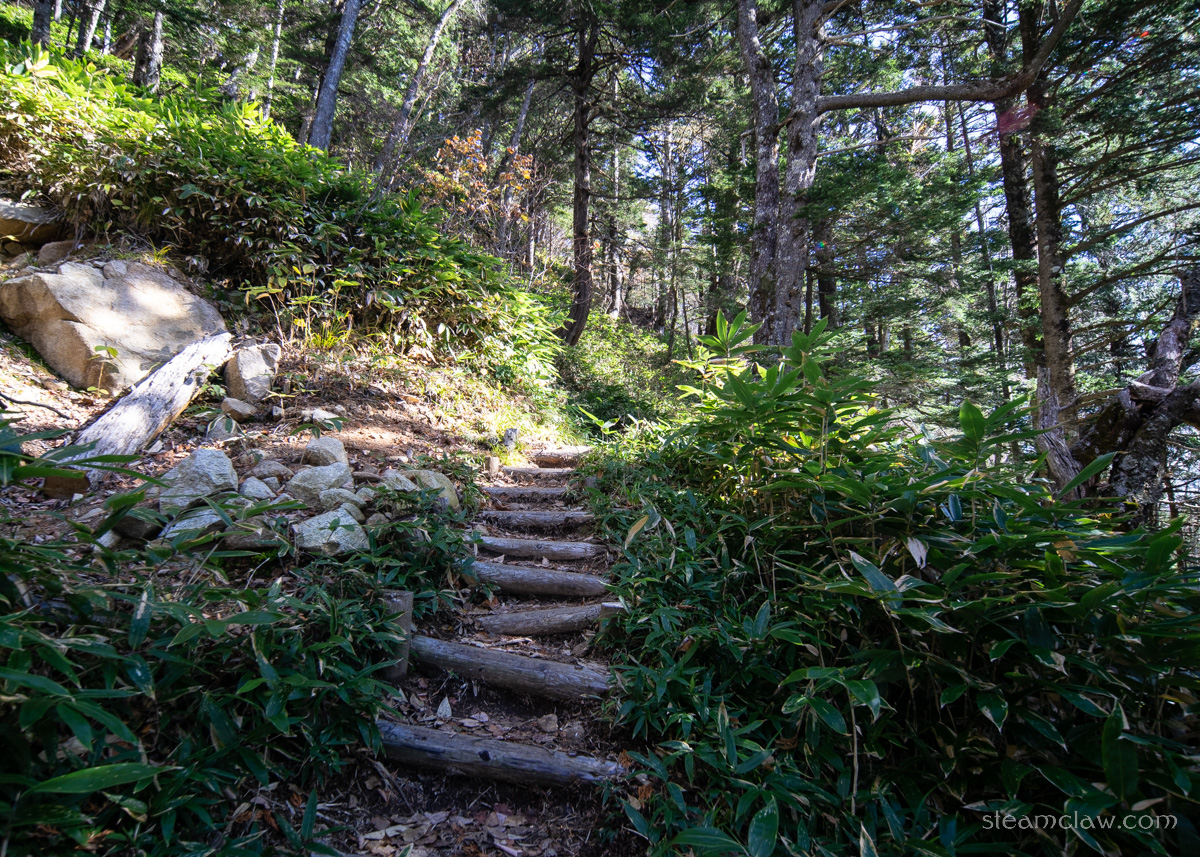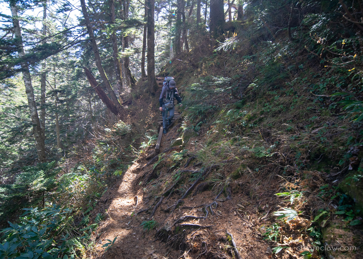 ここからは西穂山荘に向かって登っていきますが、只ひたすら樹林帯のなかを登っていくだけの単調な登山道です。コースタイムでいうと3時間30分ほどと、それなりの距離はあるのですが、紹介できることは然程ありません。