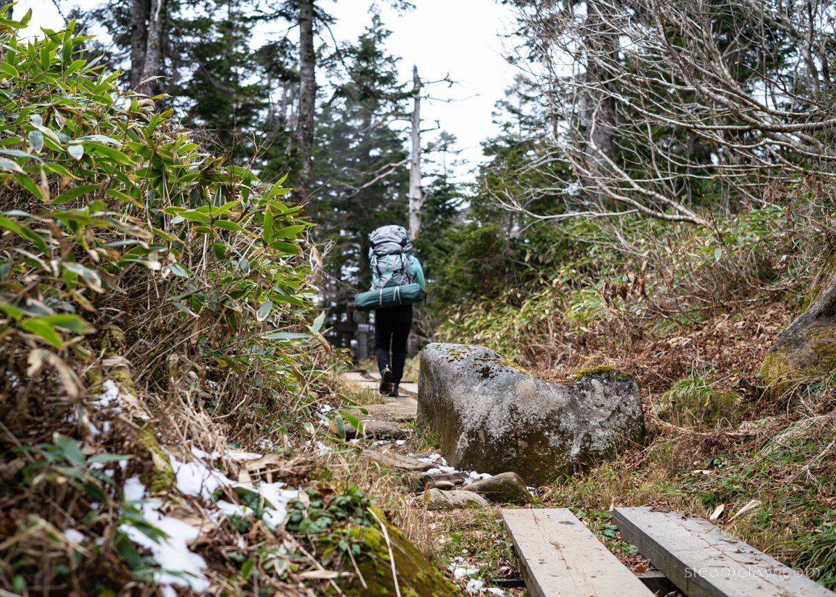 本当はせっかく泊まり登山するなら初日に焼岳を登ってから西穂高岳方面に向かいたかったのですが、上高地から焼岳へのルートは冬季閉鎖中。中尾高原口からのルートも、こちらは災害復旧工事のため閉鎖中と、アクセス不可能なため断念し、西穂高岳へのピストン登山に決定。