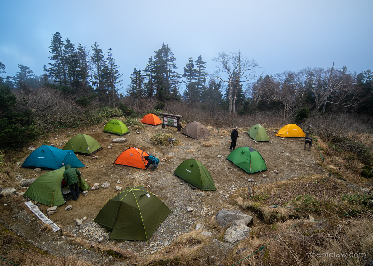 なお、もうかなり冷える季節になっているので、朝方に降りた霜でテント場が泥濘になっていないか気がかりだったのですが、そこはギリギリ大丈夫でした。