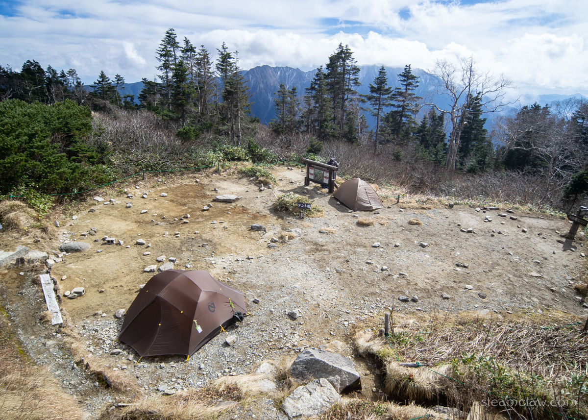 この日は足を伸ばしても丸山までだと思っていたので、手持ち無沙汰になってしまいました。仕方ないのでテント設営後は持参したお昼ごはんを食べ、夕方にアラームをセットして昼寝休憩です。