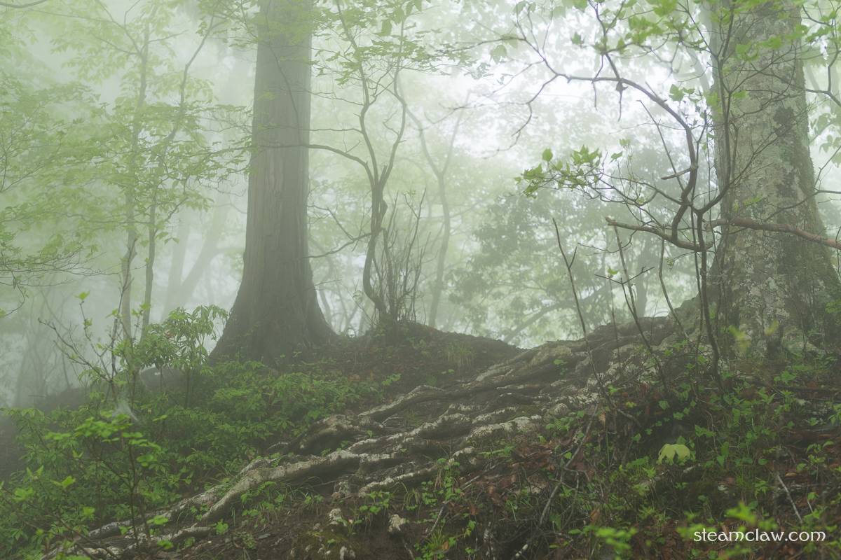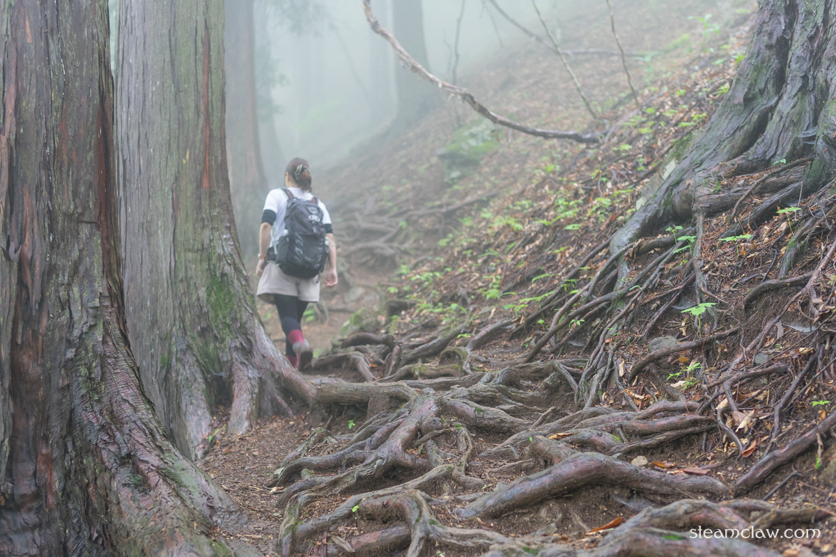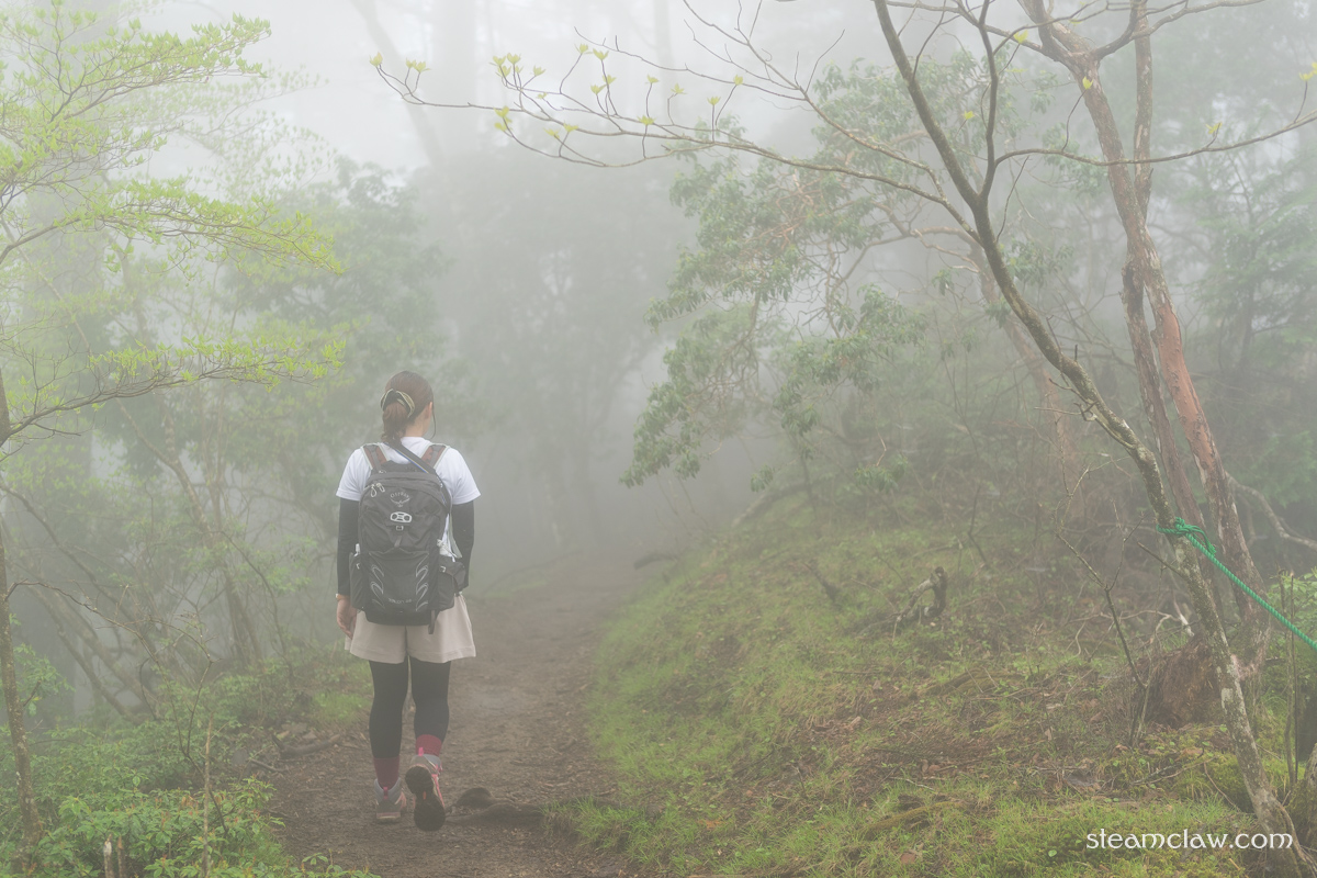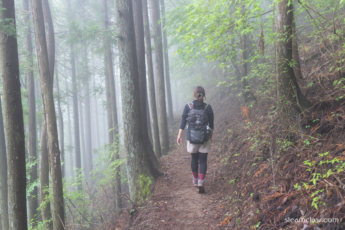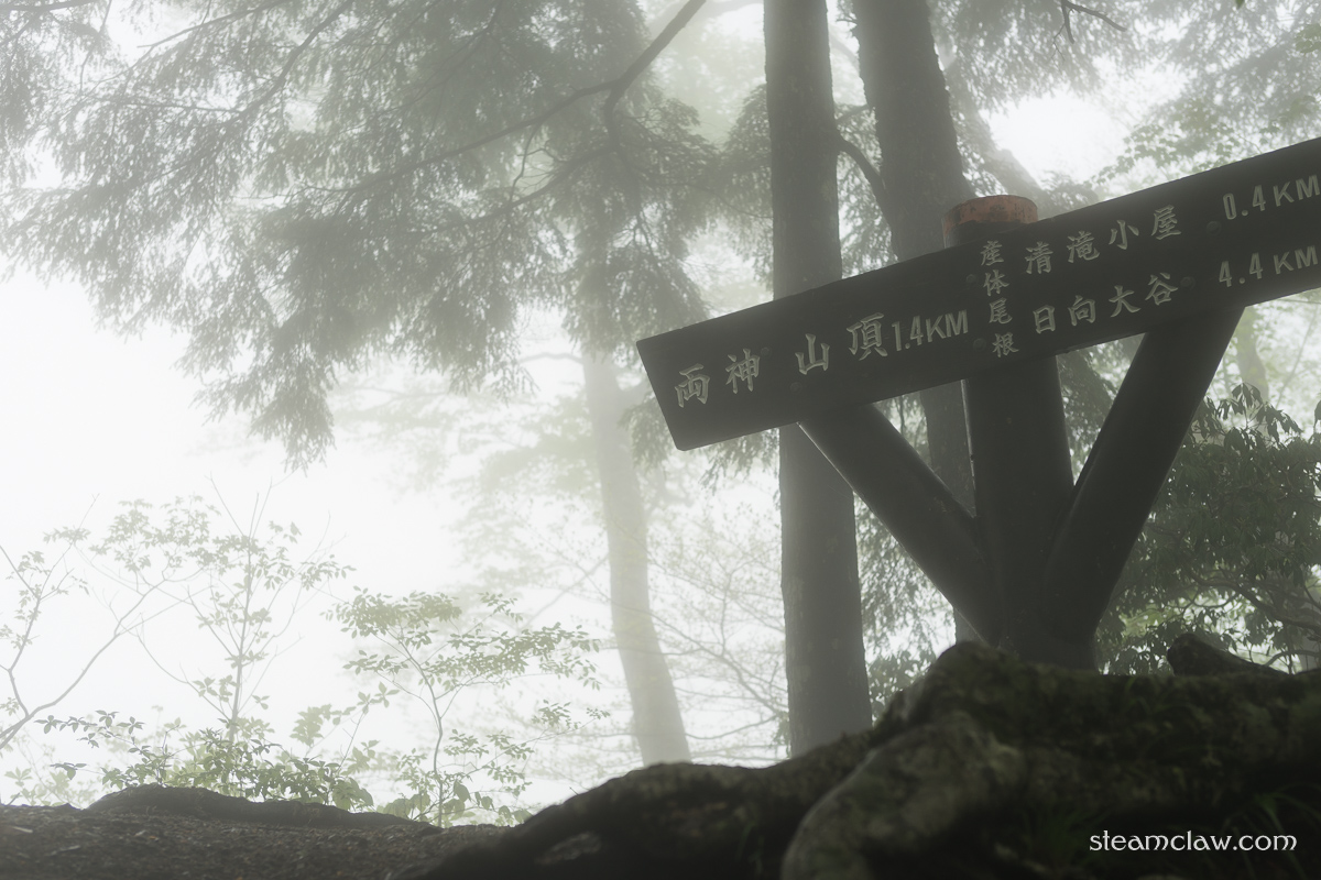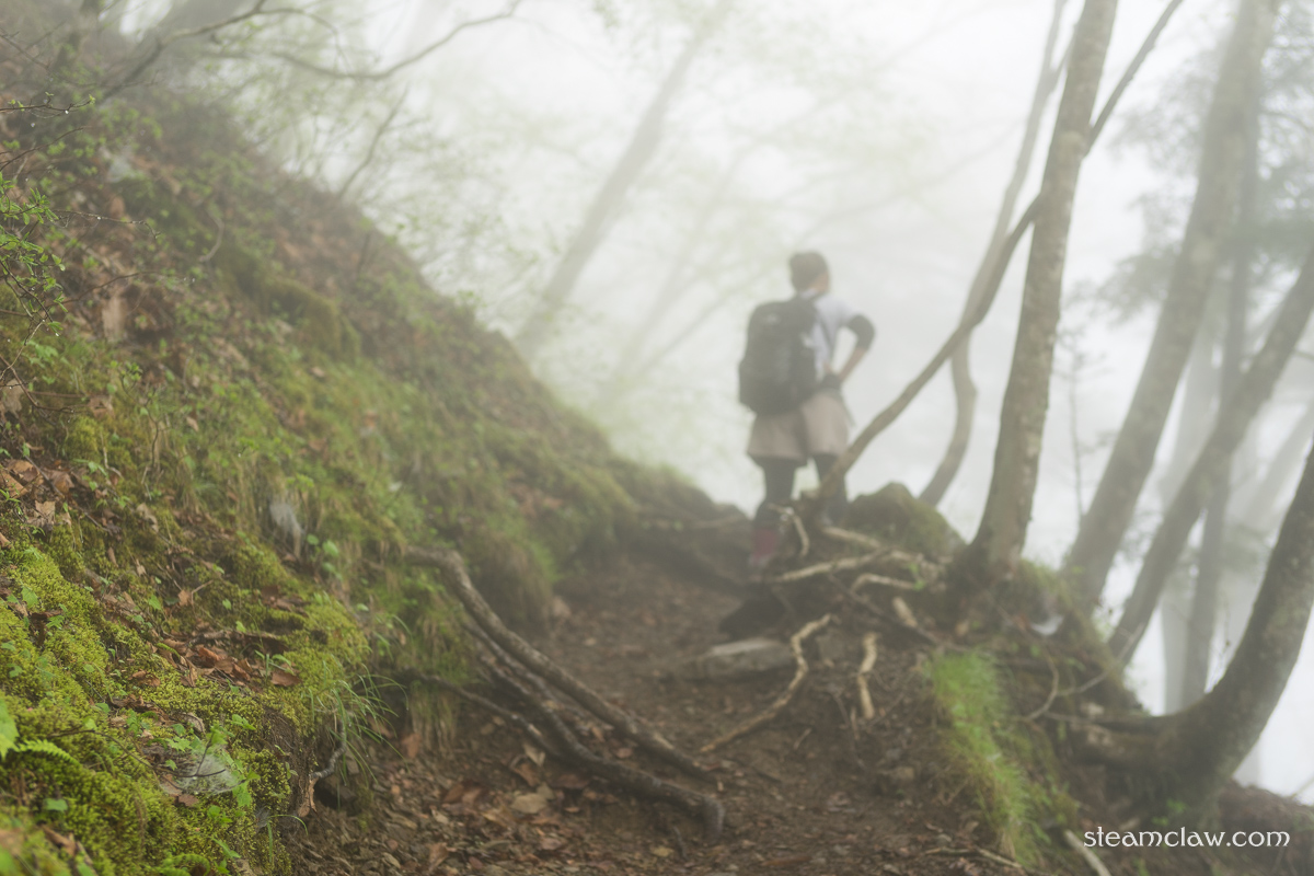 登れば登るほどガスは濃くなるし,川沿いを離れたことでコース自体も地味.そんな状況下でも写真を撮っていたのは褒めてあげたいところですが,えんえんと「眠い」「じめじめする」「しんどい」「清滝小屋はまだなのか」が頭の中をループしていた記憶しかありません.