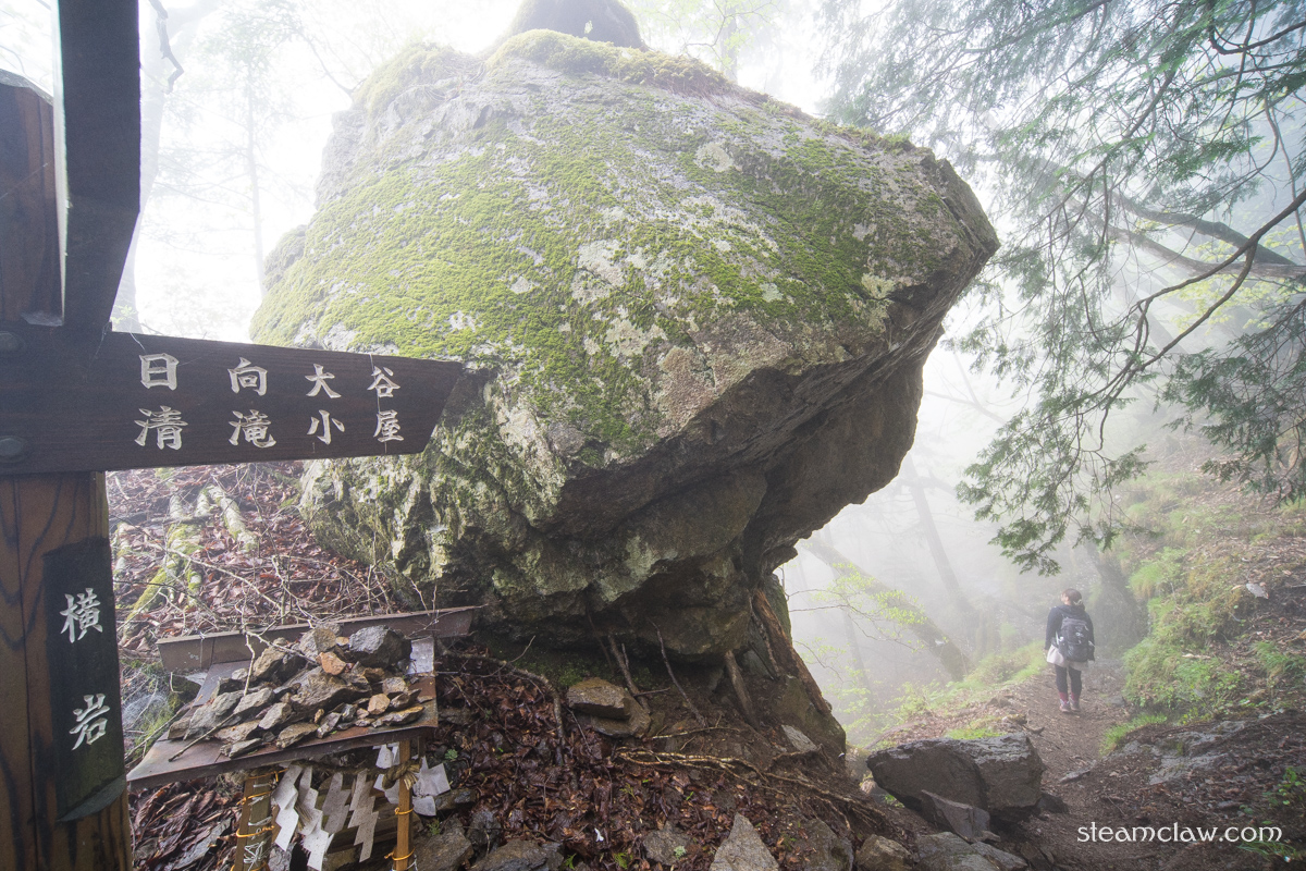 とはいえ来てしまったものは仕方ない.まずは日向大谷口からの登山口へ.山岳信仰の篤いことで有名な山だけあり,立派な鳥居が迎えてくれます.そばにある祠にて本日の安全登山を祈願したのち登山スタート.