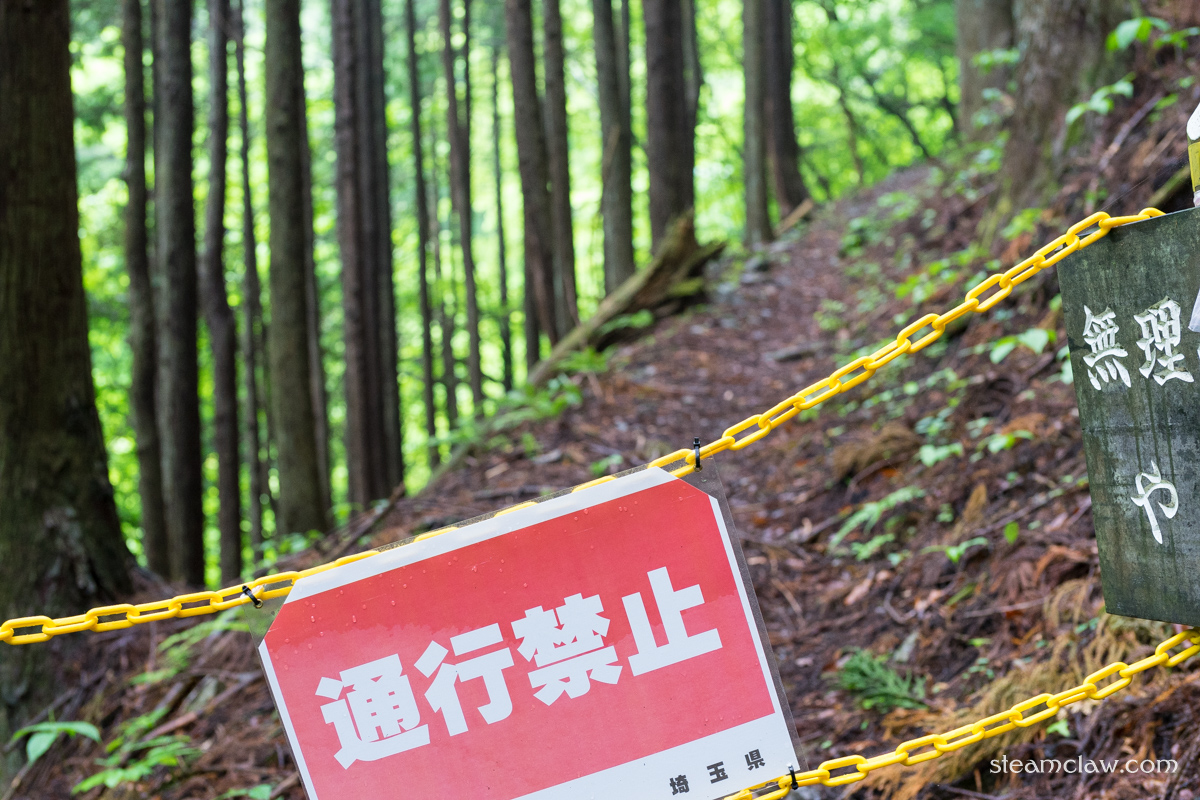 表参道コース自体も薄川沿いを登るコースと七滝沢沿いに登るコースに途中で分岐するのですが,七滝沢コースは崩落により閉鎖中とのことでピストン登山と相成りました.