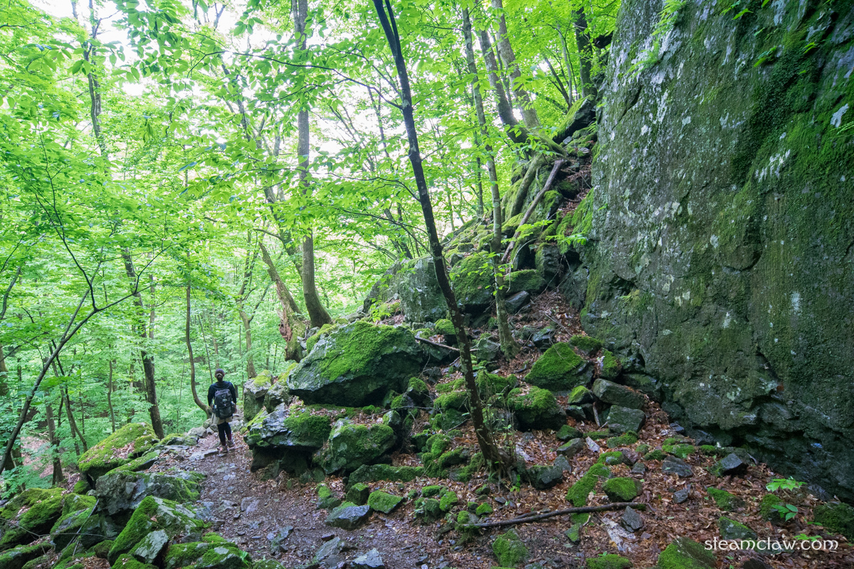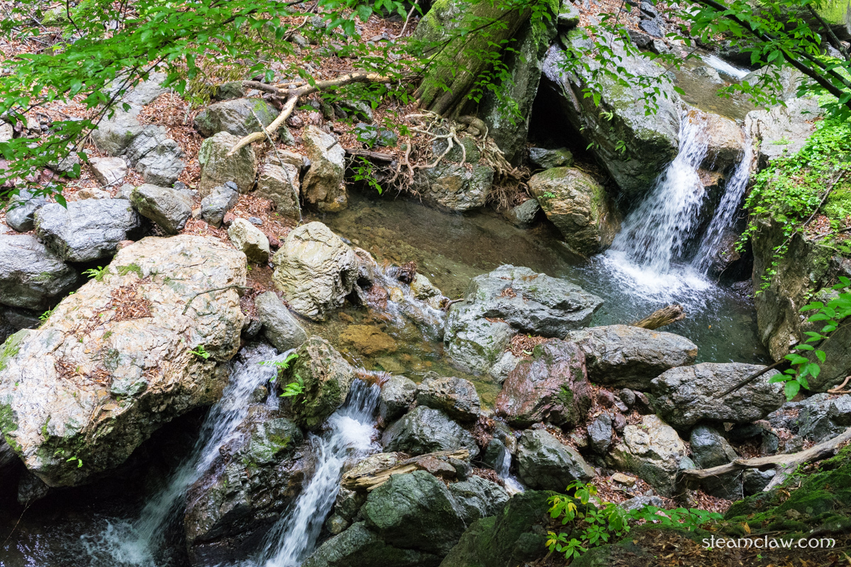 鮮やかな緑と沢沿いの冷たい空気が心地よい…と言いたいところなのですが,まとわりつくような湿気のおかげで汗がまったく乾かず.気温はそんなに高くないはずなのですが,体感の不快指数は相当なものがありました.