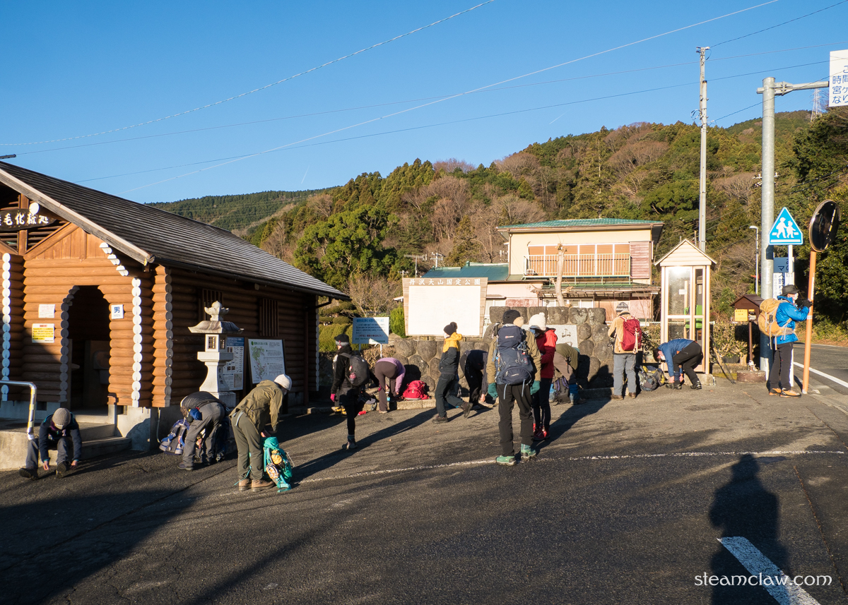 春秋に比べると冬はハイカーがめっきり減る印象のある秦野駅ですが,それでもこの日はバス2台が満席になるくらいの人出.蓑毛にはそこから20分ほどバスに揺られて到着します.蓑毛乗越を経由して大山へ至る登山道の起点でもあり,しっかりした公共トイレが設えてあるので出発前の準備.