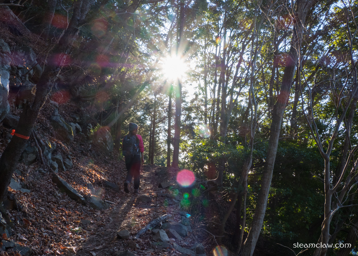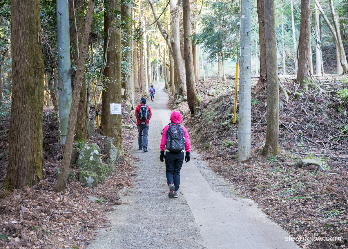しばらくは低山によくある感じの杉林を歩いていきますが,登っていくにつれて勾配が少し厳しくなっていく.まだまだ序盤なので無理してペースを上げすぎないよう進んでいきます.