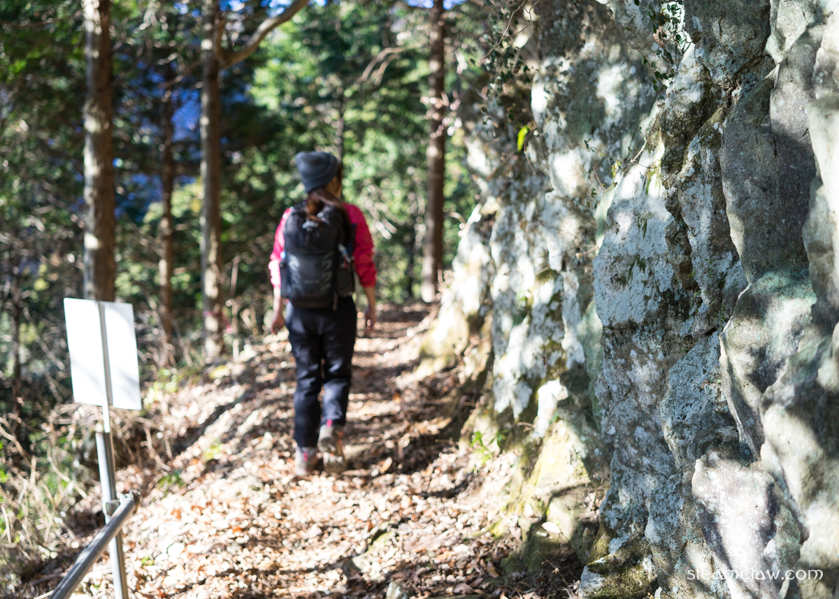 まず目指すのは標高1,144メートルのニノ塔ですが,登山道は早速階段の連続.途中菩提峠から登ってくる林道と合流する箇所があり,そこだけは平坦ですが後はだいたい登り勾配.途中ベンチが幾つかあるので休憩は可能ですし,勾配自体はそこまでキツいわけではありません.