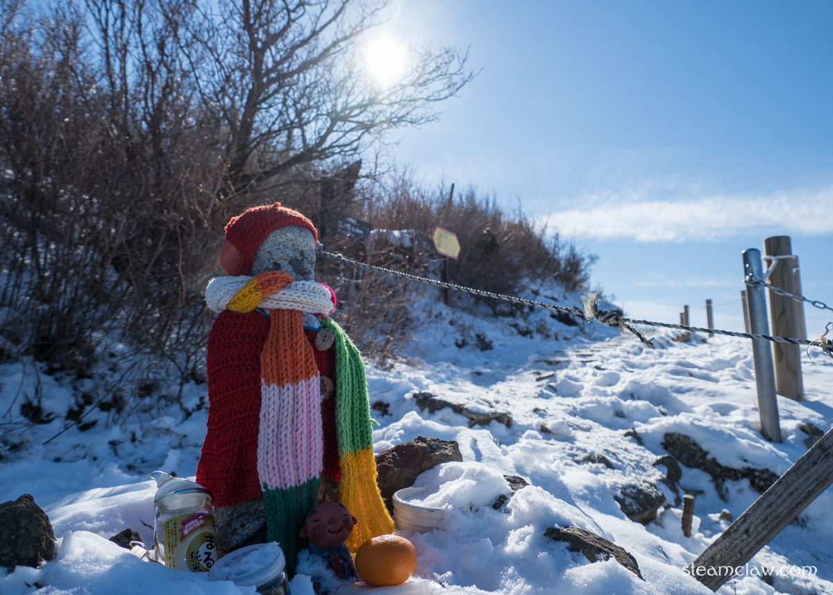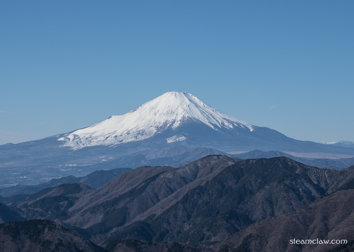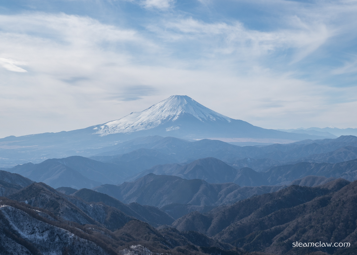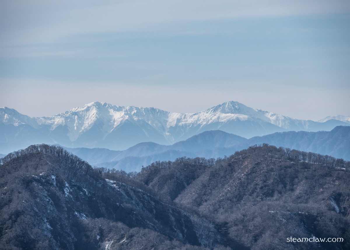 この日は公共交通機関利用登山のため登頂時間が遅く,陽が昇りきってしまいモヤッとした写真になってしまいましたが,冬季だけあって見晴らしはよく遠く南アルプスまで眺めることができました.
