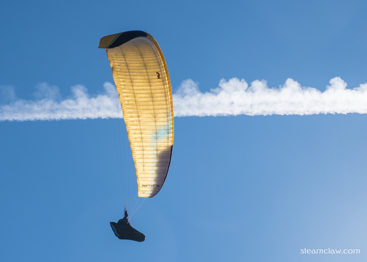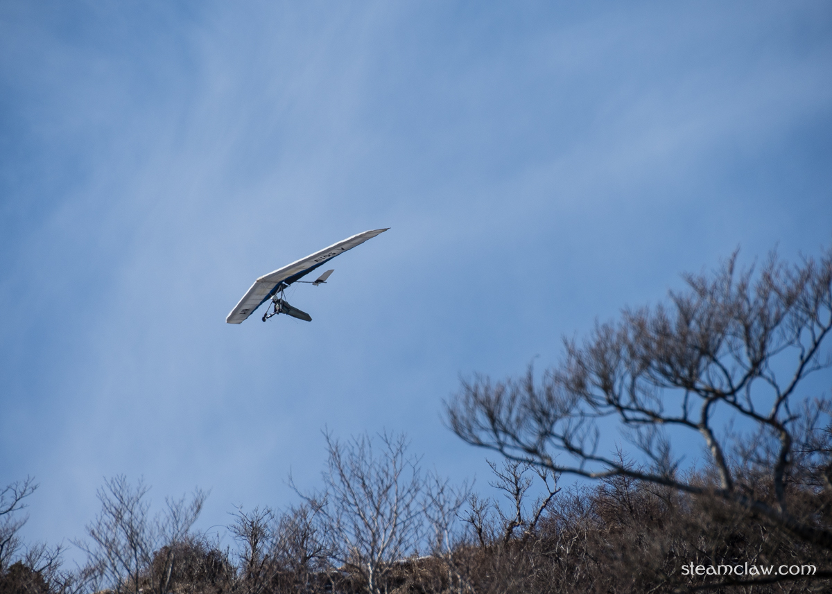 烏尾山の頂上も三ノ塔ほどではありませんが,開けたスペースとベンチがあり休憩することができます.この日は良い風が吹いていたのか,パラグライダーが飛んでいるのが見えました.確か菩提峠と二ノ塔あたりに滑走路があったかと記憶しています.