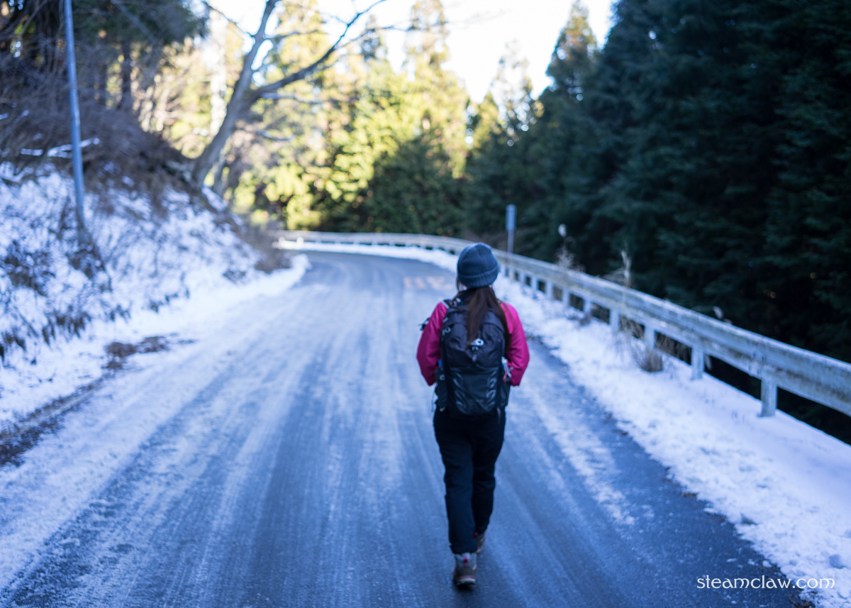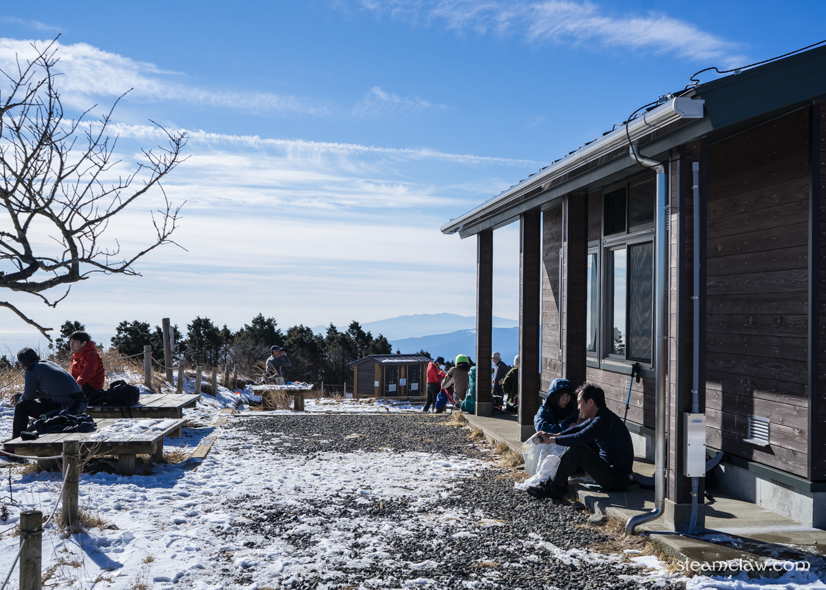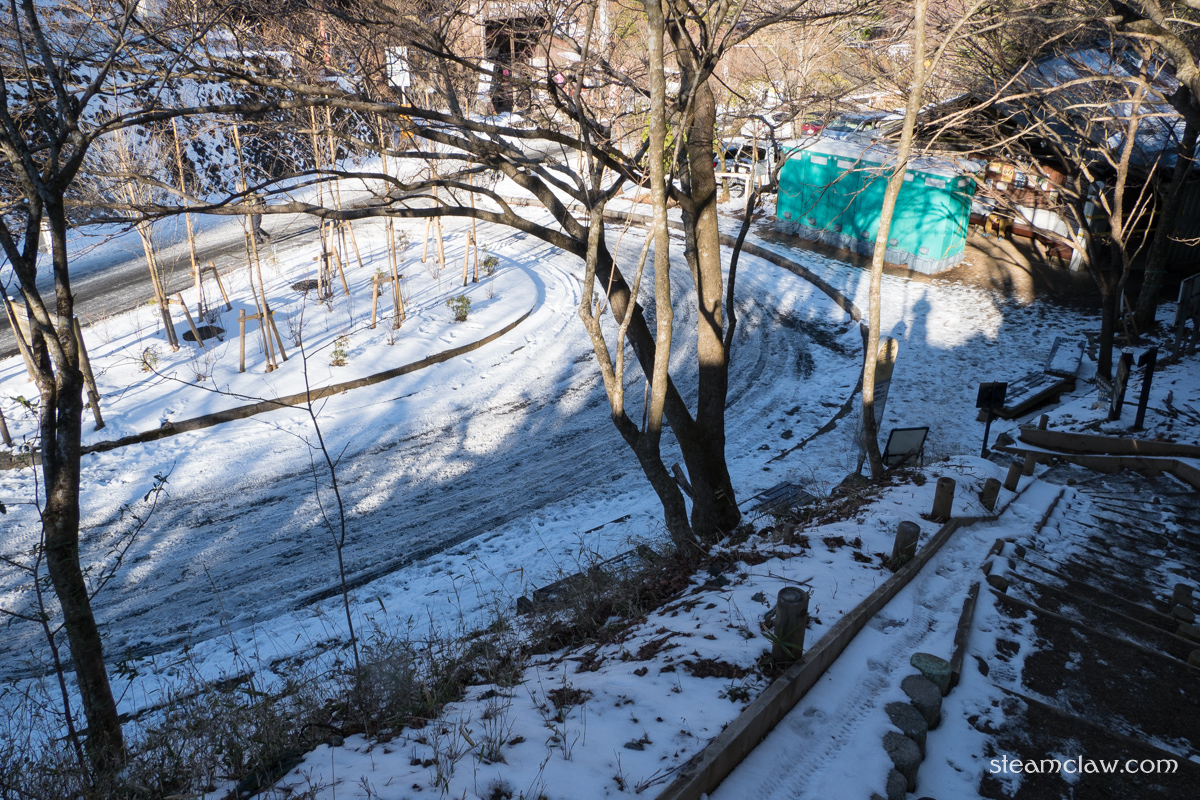 ヤビツ峠には一面うっすらと積雪が.もう少しどっさり積もってて欲しかったのですが,まあ仕方ないか.この程度の積雪でも神奈中バスは登ってきてくれない(なんなら積雪がなくても凍結だけでもNGだと思われる)のですが,峠の駐車場はハイカー達のものと思わしきマイカーで満車です.