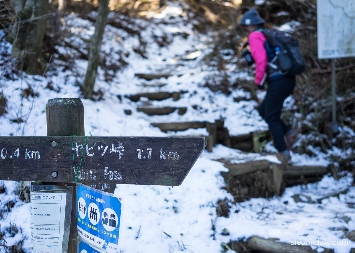 登山口へのアクセスという観点からは大倉から登るのがベストですが,せっかくの雪山ですから表尾根コースを選択.通常はヤビツ峠が起点となるのですが,積雪時は神奈中バスが峠まで登ってくれないので麓にある蓑毛がスタート地点.ヤビツ峠から塔ノ岳までは6時間,塔ノ岳から大倉までは2時間半強のコースタイムです.
