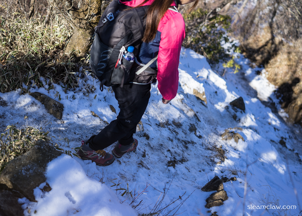 厳冬期ではないにせよ1月という冷えこみがちな時期の登山,かつ積雪がある状況でしたが,ここ塔ノ岳に関していうとガチな冬山装備は不要.いちばん寒さを感じたのは蓑毛バス停の出発直後で,あとは運動で体が温まってくればミッドレイヤーで行動していても寒さは感じません.