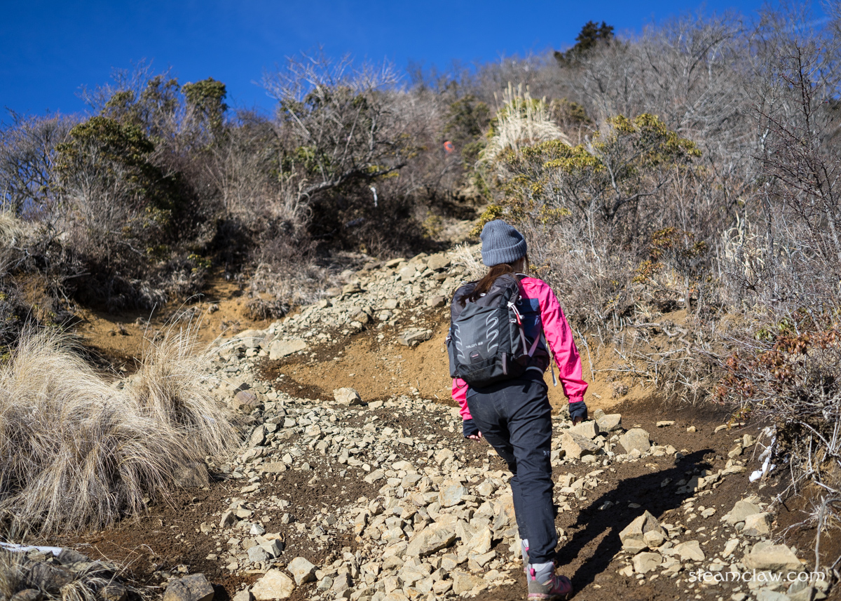 烏尾山を過ぎると,次なる目標は行者ヶ岳.途中までは緩やかなアップダウンのある低木・草本中心のなかを気持ちよく歩いて行けますが,行者ヶ岳自体は表尾根の中でも結構ハードな登り(ヤビツ峠⇨塔ノ岳方向だと一番キツイかも)なので心してかかります.