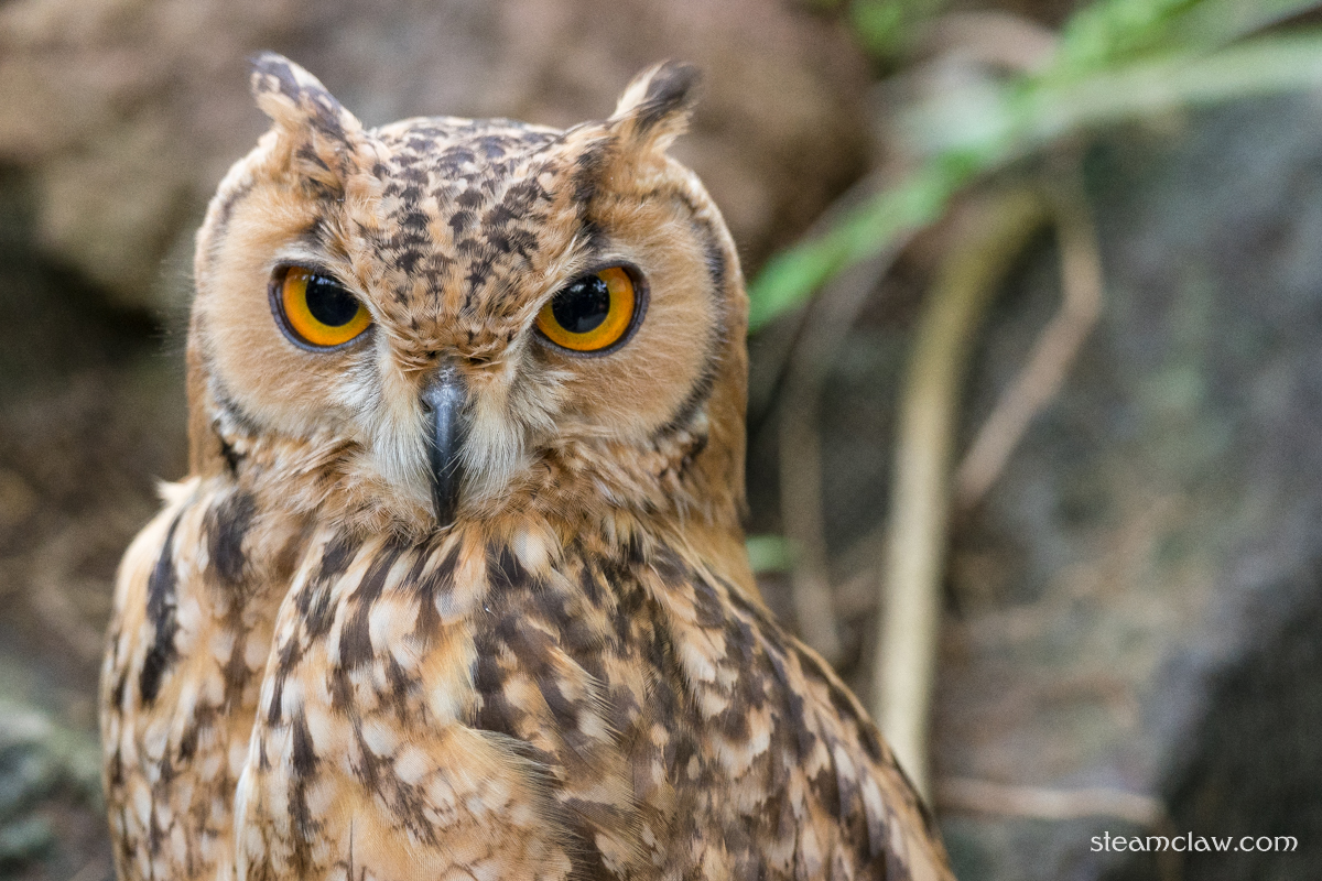 5つあるサボテン温室のうち「森林性シャボテン館」では順路沿いにフクロウやミミズクが鎮座していらっしゃいます.もちろんフクロウカフェのようなお触りは禁止ですけど至近距離での写真撮影が可能.やっぱりお耳のついたミミズクが一番イケメンだと思うの.