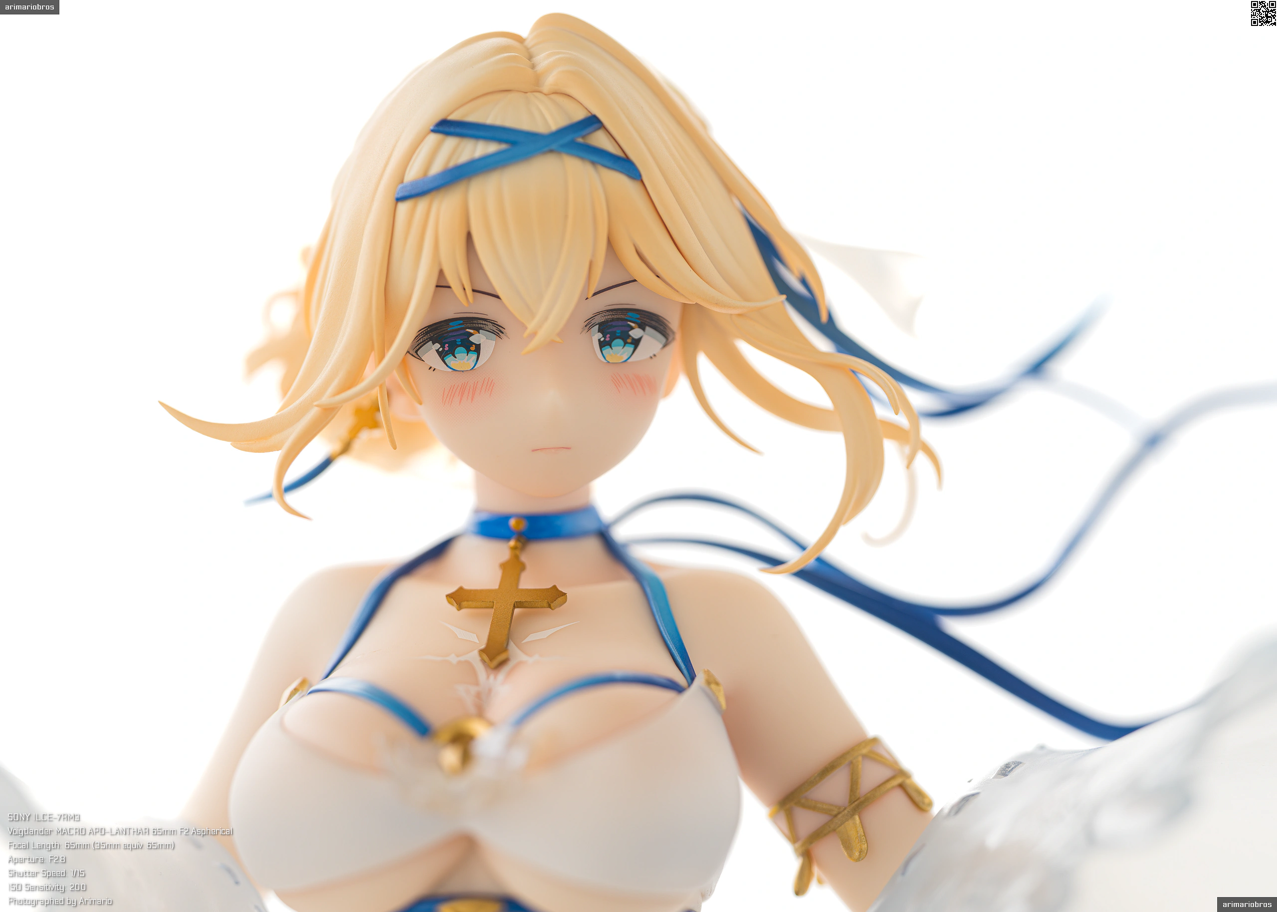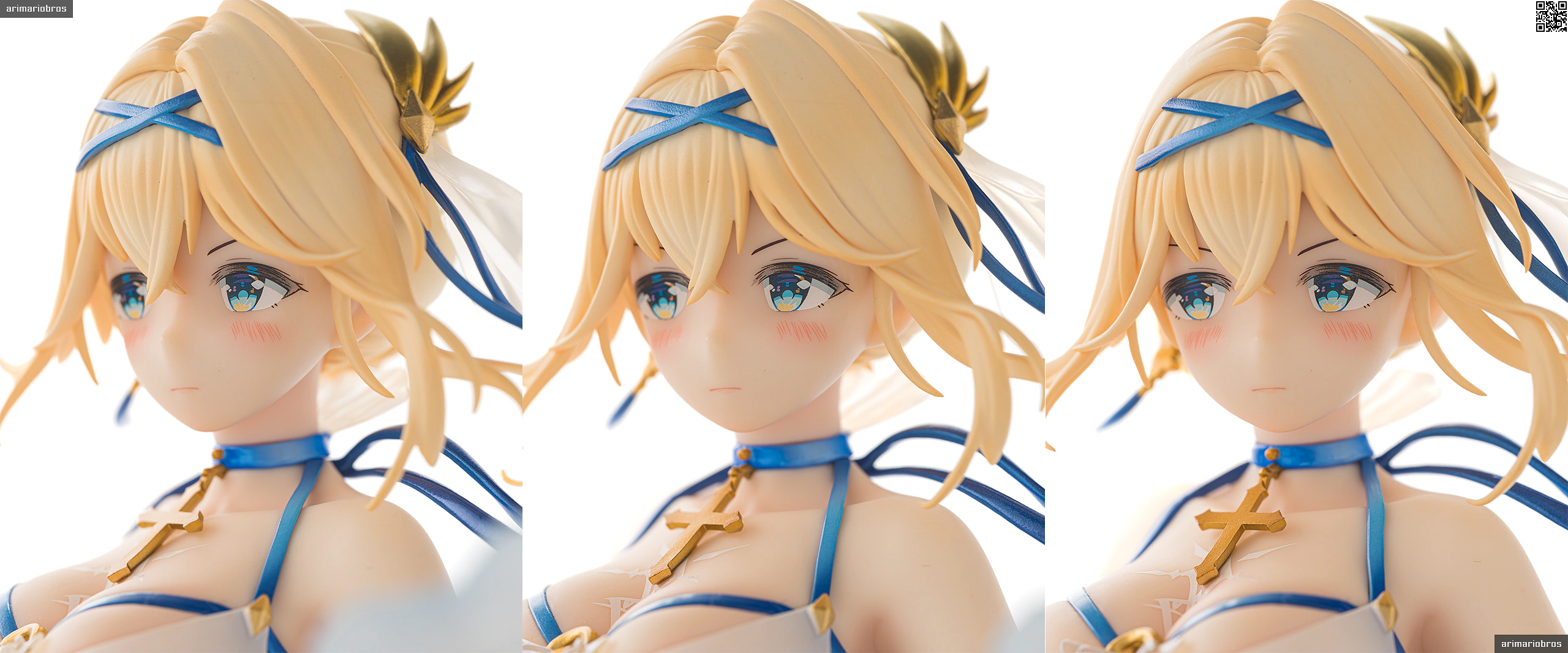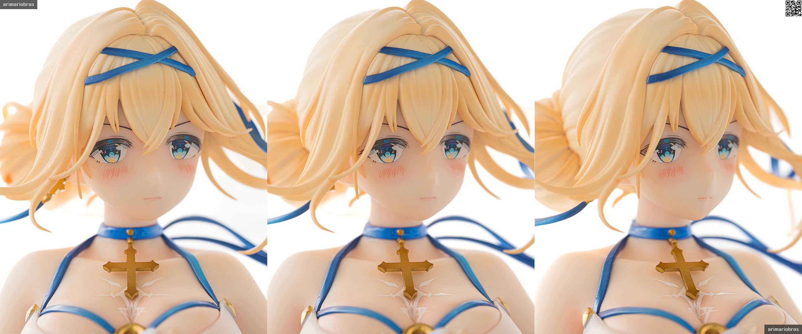 頭部にはブルーのヘアバンドとリボン、十字架をモチーフとしたイヤリング、そして薄布の髪飾りを着用。髪飾りはクリアパーツです。アクセサリーはいずれも、いずれも目立つ塗装のはみ出しなどなく、細かいところまでしっかり仕上げられていますね。