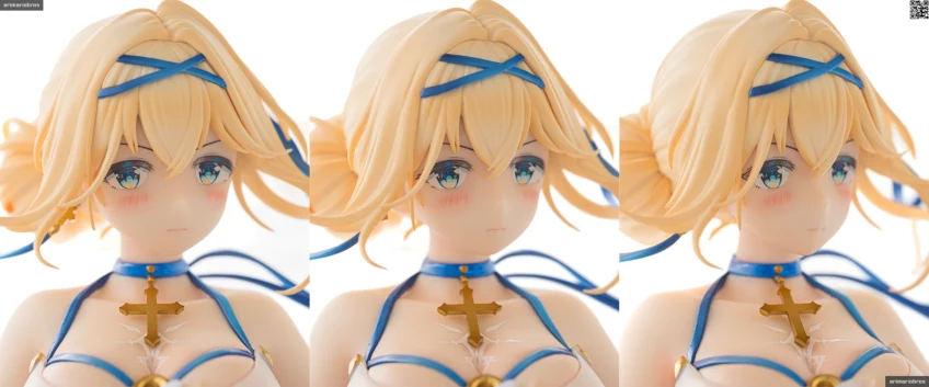 - 元絵や彩色見本と比べると目元や口元の表情が緩く、聖騎士モチーフのキャラクターにも関わらず凛々しさが感じられない