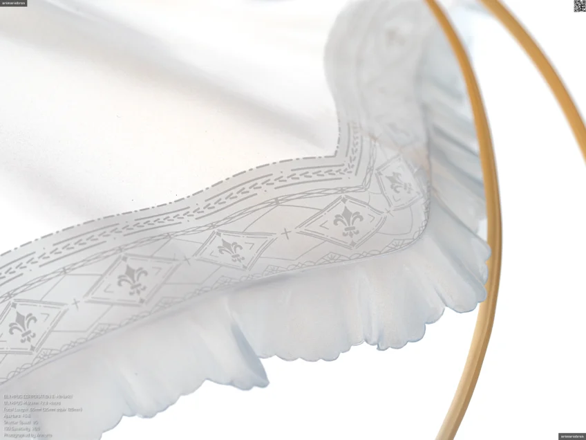 中世フランスの英雄であるジャンヌ・ダルクから命名された艦船を元ネタにしたキャラクターとあって、フランス王家の象徴である百合紋章 (Fleur-de-lis, フルール・ド・リス) を模した紋章が袖や裾部分にあしらわれていますが、これも精巧に再現されています。