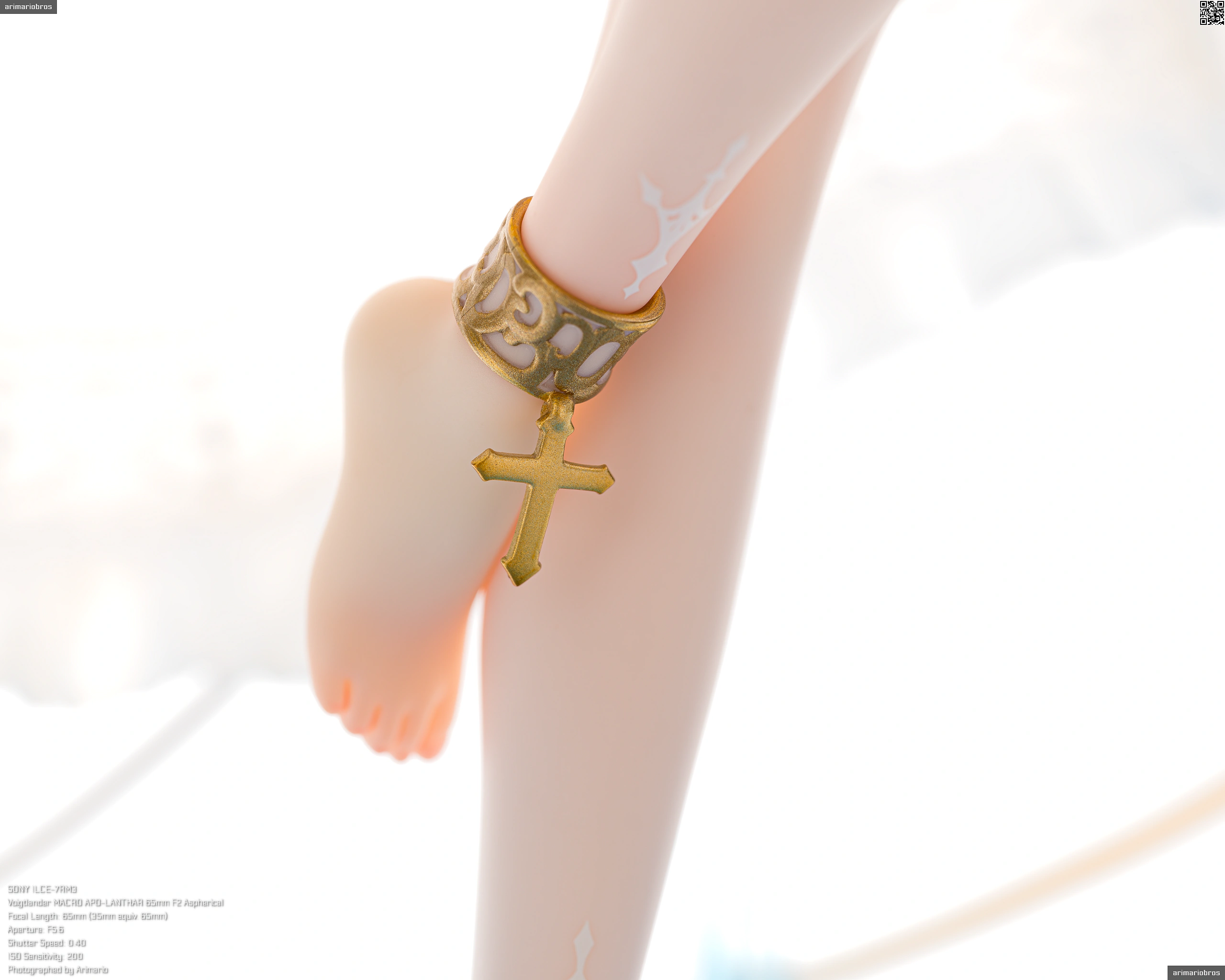足回りも、ところどころリボン、アクセサリー、聖痕があるほかはシンプルな造形。他のパーツと同じく成形や塗装の仕上げに雑なところは見られません。プロポーションはかなりかなりスレンダーな部類に入るでしょうか。胴体部分もそうですが、しっかりハイライト吹かれてあるおかげで立体感あるのが良いですね。